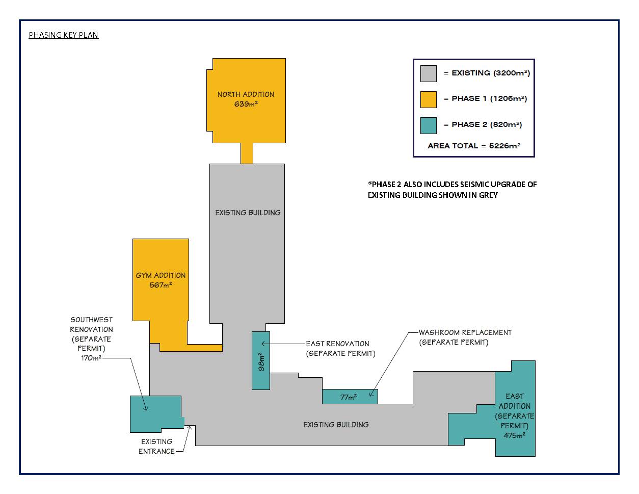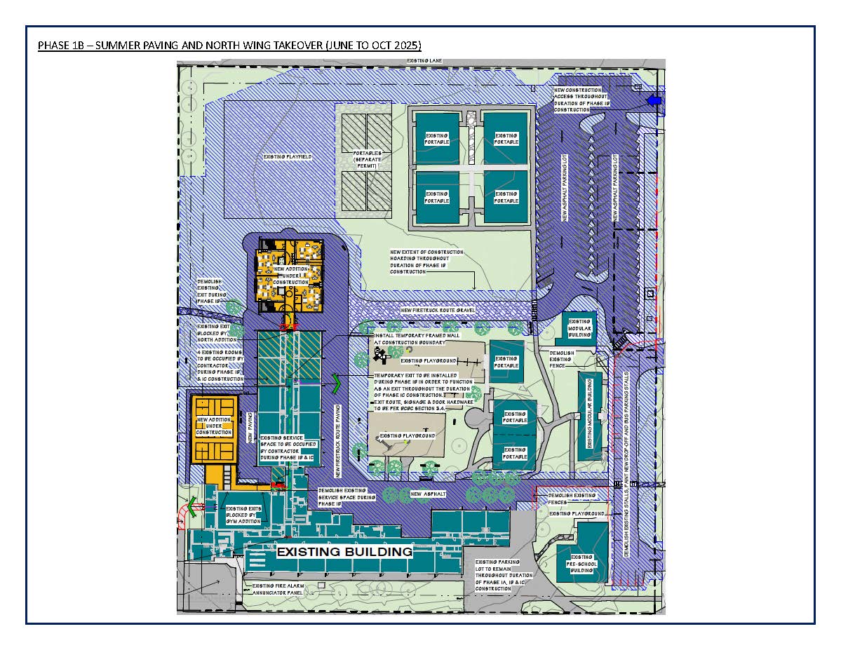 Phase 1 of the project includes the construction of the new 2 storey north addition and new gym with an occupancy target of March 2026.