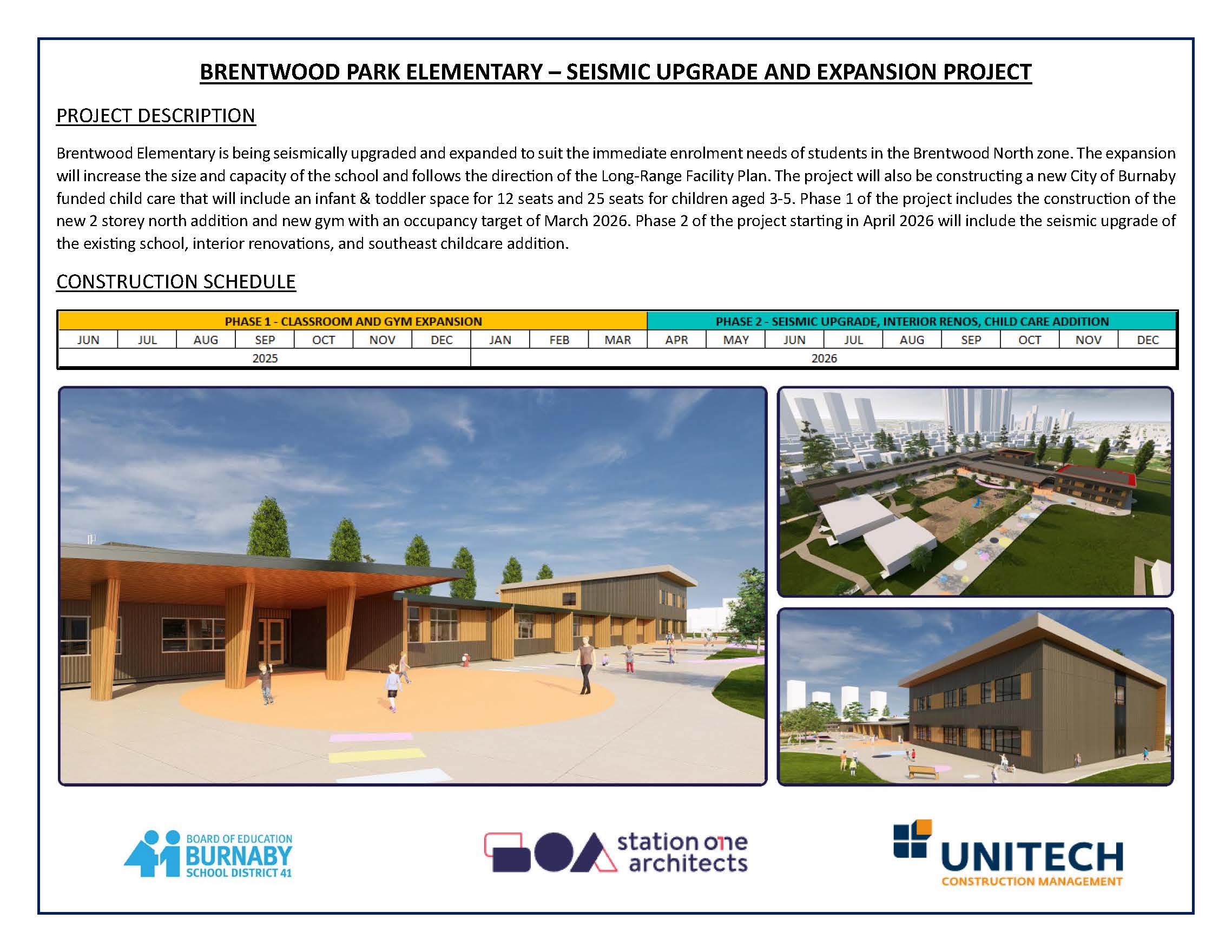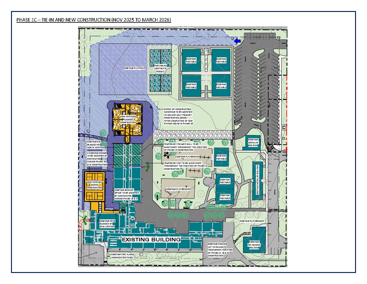 Phase 2 of the project starting in April 2026 will include the seismic upgrade of the existing school, interior renovations, and southeast childcare addition.